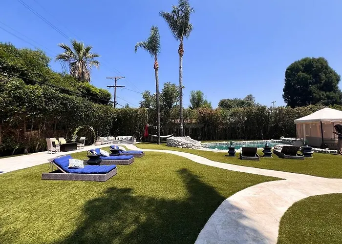 The 4-bedroom Luxury Oasis In Central Valley W Pool & Spa Topeka Los Angeles villa offers swift access to various city sites, such as the Tarzana Recreation Center, situated approximately 5 minutes' walk away. Located 4.9 km from the Lake Balboa, this property provides Wi-Fi and free private parking.
